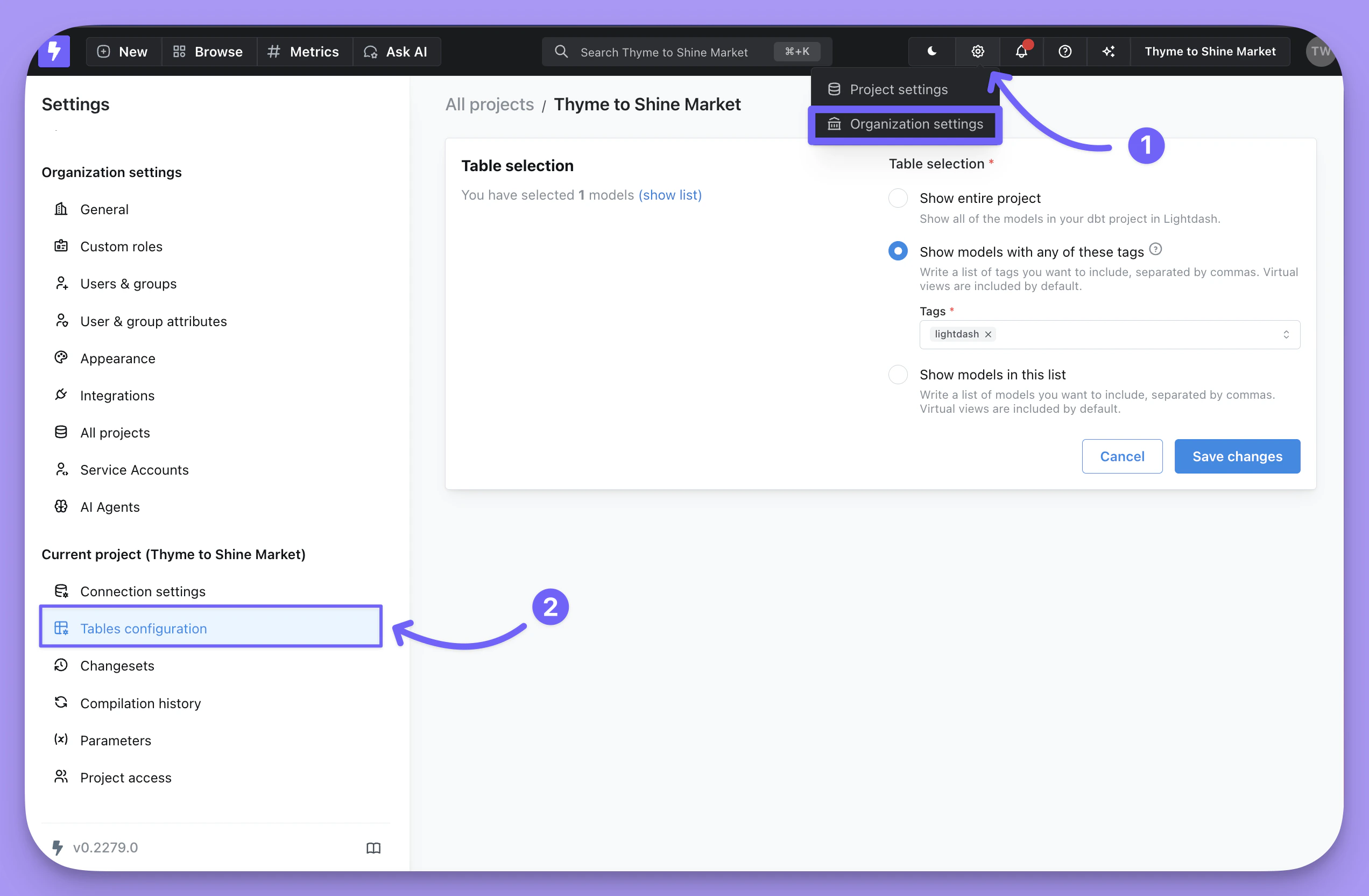 Configuring which Tables appear in your Lightdash project