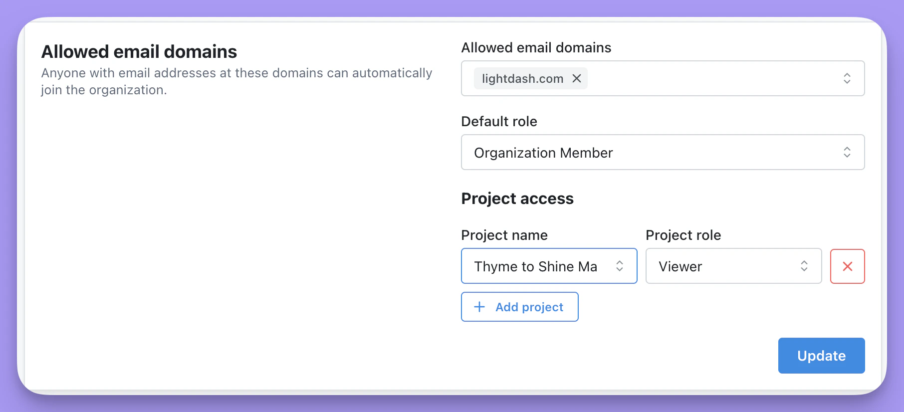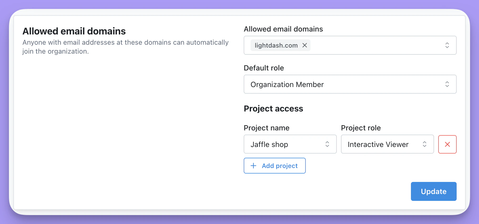 Once you’ve selected the default roles for your allowed email domains, make sure to click Update to save your changes.