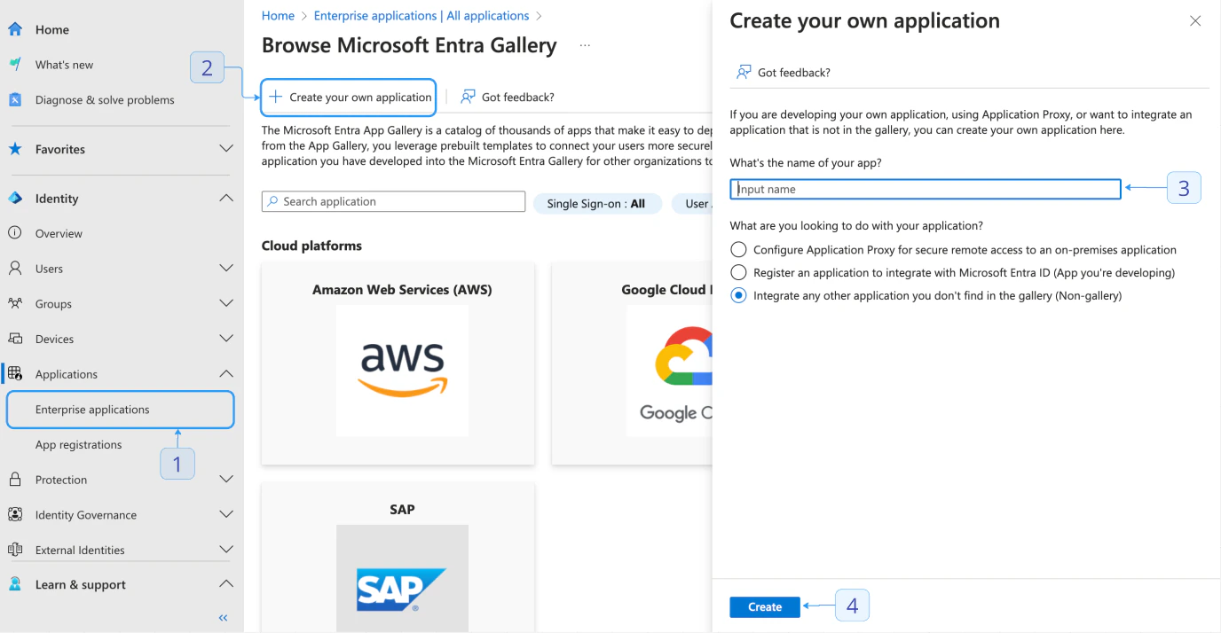 - Navigate to Enterprise applications and select your application.
