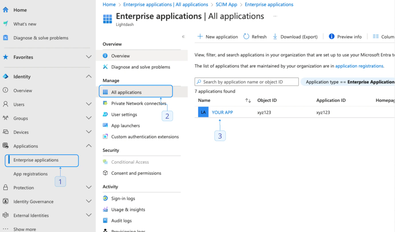 Hybrid identity administrator permissions to configure SCIM for your organizationStep 1 - Connect SCIM to Lightdash from Azure