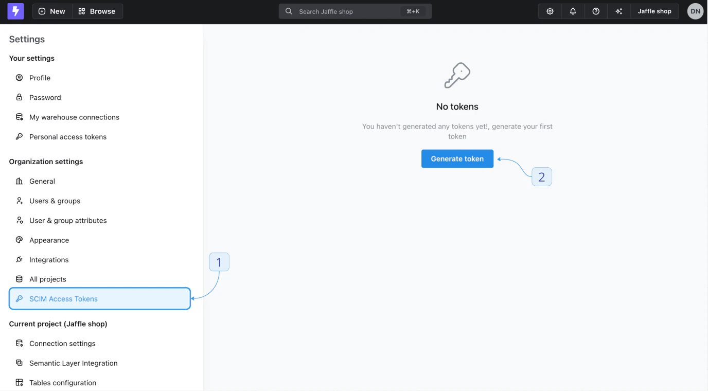 - In the sidebar, select SCIM Access Tokens.