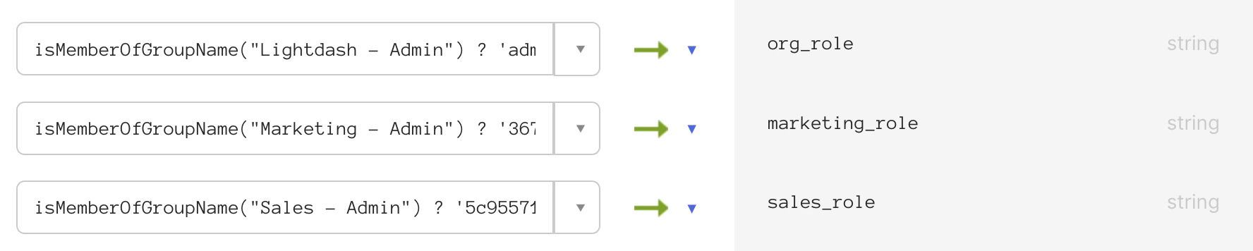 /Roles, use the manual configuration documented in your IdP. Remember: only the value is required by Lightdash.